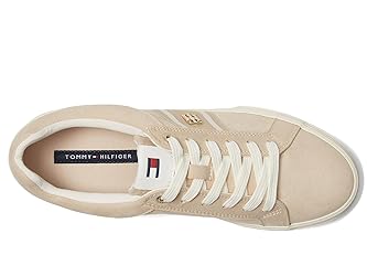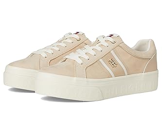 - Stylish and comfortable, the Tommy Hilfiger Badria Sneakers add a touch of sporty glamour to almost any look and will be a great addition to your wardrobe. The low-top, round-toe sneakers are designed with a polyester upper, polyester lining, and polyester insole. The branded logo hardware and signature ribbon offer authenticity and the lace-up closure ensures a secure fit. Ethylene vinyl acetate outsole.