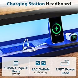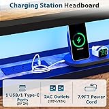 【Convenient Charging】This full size bed frame features 2 standard outlets and 2 USB ports, allowing you to easily charge your devices from the comfort of your bed. The 2-tier headboard provides ample space for storing glasses, books, or your alarm clock. 【Smart RGB LED Lighting】Customize the lighting with the remote or app to adjust brightness, color, and mode. With over 60,000 color options, you can create the ideal ambiance for your bedroom. You can even sync the lights with music for a more immersive experience. 【Space-Saving Storage】Equipped with 4 smooth-gliding drawers, this full bed frame offers generous storage space for bedding, clothing, and other essentials. The built-in lock mechanism ensures the drawers remain securely in place. 【Sturdy and Reliable】Constructed from a solid metal frame, this full size bed frame with LED lighting offers exceptional durability and a load-bearing capacity of up to 800 lbs. Each metal slat is fitted with a mounting clip to prevent shifting and reduce noise, ensuring a quiet and restful sleep. 【Hassle-Free Assembly】This full size bed frame comes with storage packaged in a single box with clear, step-by-step instructions and numbered parts, allowing for easy assembly in approximately 45 minutes.