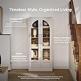 Dimensions: Overall: 31.5 (W) x 16 (D) x 72 (H) inches; 1-year warranty Classic Modern Farmhouse Design: Enhances the visual appeal with two-tone color contrast and chamfered edges. Elevated details like accent brass handles, recessed panel frames, and trendy arched details, paired with natural wood grains, create a timeless and inviting space with a touch of sophistication Modular Design that adapts to your Changing Needs: Arrange the pieces in various ways to create a storage solution that perfectly fits your space. Explore endless possibilities and design a personalized storage solution with other items from the Blake collection Versatile Collection for Any Space: Pantry, Kitchen, Bathroom, Living Room, Study Room – adapts to any room and any need Maximize your Storage Space: Effortless organization with a center divider, 10 compartments and 8 adjustable shelves