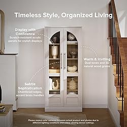 mopio Blake Tall Display Cabinet, Kitchen Buffet Pantry Cupboard, Trophy Display Case, Storage Cabinet Scratch Resistant Acrylic, Modern Farmhouse Curio Organizer (White Oak Arched, Set of 2)