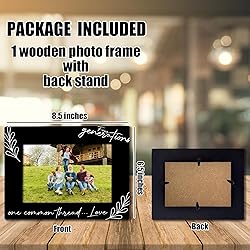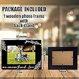 - Size: The frame measures about 6.5 x 8.5 inches and it holds 4 x 6 inch photos. Quantity: The package includes 1 photo frame with wooden stand behind. Material: The wooden frame is made of high-quality density board, sturdy & suitable for a long term use, minimalism design & with handcrafted rustic printing style, suitable for decoration of different scenes. Versatile: You can display the photo frame at different places you want, or give it to friends as a gift to record your important moments.
