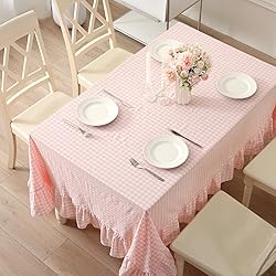 100% Cotton: Made from high-quality, durable cotton, this tablecloth is soft, comfortable, and long-lasting, ensuring it will last for years to come. Gingham Plaid Design: The tablecloth features a classic plaid design in blush and white, adding a touch of elegance and sophistication to your dining or kitchen table. Ruffled Edge: The ruffled edge of the tablecloth adds a touch of texture and visual interest, making it a stylish and eye-catching addition to any setting. Machine Washable: This tablecloth is easy to care for and can be machine washed and dried, making it a convenient option for busy households. Versatile: The blush and white color scheme of this tablecloth makes it a versatile accessory that can be used for a variety of occasions, from casual family meals to formal dinner parties.