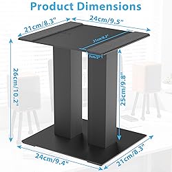 【Enhanced Listening Experience】Stands Height: 9.8"(25cm). Top Platform size: 9.5"x8.3"(24x21cm).Base plate size: 9.5" x8.3"(24x21cm). By positioning your speakers at the right height, enhancing the overall listening experience. 【Steel Desktop Speaker Stands】Desktop Speaker Stands Made of heavy-duty and durable Steel material.Holds up to 25 lbs.Multipurpose small speaker stands, can support most small or midsize speaker/studio monitors. 【Built for stability】Each bookshelf speaker stand uses four rubber feet to reduce vibration for better audio quality and prevent the stand from moving or shifting when placed on your desk. 【Easy Assembly】These studio monitor stands are effortless to assemble, allowing you to set up your audio system quickly and enjoy your favorite tunes without delay.It's an ideal gift for audiophiles and music enthusiasts alike. 【Accessories include】Tray*1, base*1, nails*16, EVA long slip mat*8, EVA round slip mat*16.If you have any problem,please contact us, we will help you to solve it within 24 hours.