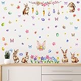 Eersida 6 Sheets 86 pcs Large Easter Wall Decals Easter Wall Stickers Bunny Eggs Branches Spring Rabbit Flower Butterfly Carrot Window Clings for Wall Home Living Room Kitchen Decor