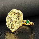 Made of 925 sterling silver and stamped, ring features a reproduction ancient Greek Bull Cow head bronze coin, 24k gold vermeil over base metal, high quality diamond cut green color cubic zirconia stones on each side of the coin, hand hammered full round ring band measures 2mm in width and ancient coin measures 0.83 inches (21mm) diameter High quality material & process – silver is shiny, bright, timeless, trendy. It is universally used in jewelry making, this handcrafted ring is made of 92.5% pure sterling silver s925 and stamped (925), free of lead and nickel, hypo-allergenic to sensitive skin, stylish and safe, it is anti-allergic and non-fading, this sterling silver statement ring is hand forged for long-lasting and durability, forging is a traditional jewellery making technique that has been used for centuries Plating options & gold vermeil - all of our jewelry is created by skilled artisans with different plating techniques such as gold vermeil, plated, filled in 24k yellow gold and 18k rose gold, we also process oxidation and offer oxidized, blackened gemstone jewelry for distinctive antique look, vermeil is a high-quality version of gold plating with the added layer of gold thickness, vermeil is much more long lasting, durable and affordable than solid gold, it never won’t discolour your skin The perfect gift idea – this handmade womens & mens ring is timeless and unique gift for who appreciates quality and craftsmanship, this attractive roman art jewelry is an ideal holiday gift for anniversary, birthday, valentine’s day, graduation or mother’s day, gift for wife, husband, sister, aunt or special someone, please visit our store to browse one-of-a-kind sterling silver men's rings, signet rings for women, turkish jewelry for women, mens signet rings and very popular coin jewelry Our guarantee & customer service - we are a turkish silver jewelry manufacturer, wholesaler & exporter, we pride ourselves in providing our customers with a superior service, please feel free to contact us if have any questions or needed further assistance