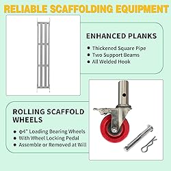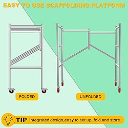 - Safe Working Scaffold: This scaffolding comes with locking wheels, allowing you to work safely on home improvement jobs Portable Scaffolding: You can easily move the scaffolding around when in use and fold it up when not in use to save your space