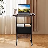 NIENIEE Computer Stand, Mobile Standing Desk, 24 * 16 in Rolling Computer Stand with Adjustable Height with 4 Four 360° Swivel Wheels, Rolling Computer Stand with Storage Bag for Home, Office, Brown