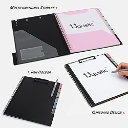 Uquelic Clipboard with Folder Organizer, 12 Pockets Project Organizer - Refillable Lined Notepad (11" x 8.5"), Hardcover Project Organizer with Stay-Put Tabs (Macaron 1 Pack)