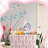 Boao Large Easter Basket Easter Collapsible Storage Bins Cute Fabric Storage Basket with Handles Organizer Books Shelf Easter Room Decor(Bow Rabbit)