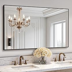 DURABLE AND SAFE DESIGN: This mirror is made of tempered glass and attached with explosion-proof film, ensuring safe and reliable use, and reducing risks during handling and daily use CRYSTAL-CLEAR REFLECTION: Provides a distortion-free reflection, perfect for applying makeup, grooming, and adding brightness to any bathroom or living space SECURE & EASY HANING: Equipped with 4 hooks, this mirror can be hung horizontally or vertically, adapting different rooms and décor styles, such as bathroom, vanity, farmhouse, bedroom, fireplace and so on ENHANCED PROTECTION PACKAGING: Packed with multiple layers of foam and tested against drops, ensuring the mirror arrives intact and ready to use SLEEK BLACK/GOLD Metal Frame: The aluminium alloy frame is durable and resistant to deformation, and is anodized to be waterproof and rust-proof, ensuring long-lasting durability even when placed over the sink