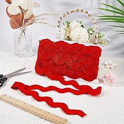 - GORGECRAFT 10 Yard 1.58 Inch Large Christmas Red Wave Bending Fringe Trim Ribbon Jumbo Rick Rack Wavy Edge Ribbon RIC Rac Fabric Trim Zig Zag for Sewing Making Wedding Dress Party Gift Wrapping Material: Polyester Color: Red 10 Yard 1.58 Inch Wide RIC Rac Trim: You will receive a wave bending fringe trim ribbon approximately 10 yard(9.14m) long, point to point about 1.58 inch(4cm) wide, packed with a nylon packaging vacuum bag, can make it easy to store Red Polyester RIC Rac Trim: The wavy edge ribbon are made of polyester, with delicate workmanship, not easy to fade and durable, classic red color, easy to match Large Wavy Edge Ribbon: Jumbo wave rick rack fringe trim ribbon for sewing is design simple and zig zag trim shaped, large size, easy to store and carry out, simple and convenient, easy to use Package list: 1Pc size: 10 yard x 1.58 inch(9.14mx4cm)