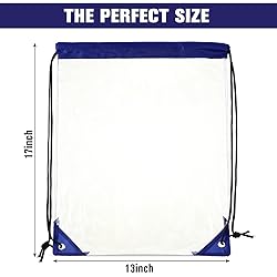 Large Quantity: you will receive 30 pieces of clear drawstring bags, a large amount that can meet your different daily needs and replacement, sufficient quantity also allows you to share them with your friends or family members Reliable and Waterproof: these see through gym bags are made of quality PVC material and oxford fabric, transparent, waterproof and serviceable, easy to clean the surface stains, avoiding your stuff getting wet, and fabric position adopts strengthen crafts, making them can serve you for a long time Convenient to Use: you can pull on the string to tighten the mouth of the clear plastic drawstring backpack, easy to open, you can easily take out the things you want, and no worry about losing the inner items Hold Many Things: our clear concert approved bag measures about 34 x 43 cm/ 13.39 x 16.93 inches, enough space for you to take something with you, like cell phone, books, bottles, snacks, keys, umbrella, clothes, glasses and more Save Your Time in Checking: the transparent appearance enables you to see what is inside clearly, save your time in searching, which can help you breeze through security quickly and no need to open your bag, so you can enjoy the concert or sports game