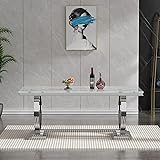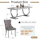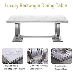 7 Piece Dining Table Set with 6 Tufted Dining Chairs,Faux Luxury Marble Dining Table and Chair Set for 6, White Marble Dining Room Table Set w/Silver Pedestal, 68in Kitchen&Dining Table Set for 6