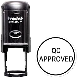 - Elevate Your Control Process with Our Standard Size Self-Inking Round QC Accepted Inspection Stamp. Are you a control inspector looking for a reliable and efficient way to mark your accepted products? Look no further. Our Standard Size Self-Inking Round QC Accepted Inspection Stamp, measuring a convenient 3/4" in diameter, is the perfect tool to streamline your inspection process. With its easy press-and-print functionality, this stamp makes clear, professional marks with just a simple press, ensuring that your control standards are met with every use. Unmatched Versatility and Durability Choose from 11 vibrant ink colors to match your brand or personal preference. Each stamp is designed to last, capable of producing up to 10,000 clear impressions before needing a refill. When the ink runs low, simply refill or change the ink pad—it's that easy. Our stamps utilize advanced laser engraving technology, ensuring that every print is sharp, clear, and professional-looking. Say goodbye to messy ink pads and hello to a clean, efficient stamping experience. Why Choose Our QC Accepted Inspection Stamp? Using our Round QC Accepted Inspection Stamp offers numerous benefits for your control processes. This essential tool provides a clear, visible indicator that an item has passed inspection, enhancing accountability and traceability in your operations. The round shape is easily recognizable, allowing for quick identification of accepted products, which is crucial in fast-paced manufacturing environments. The durability of our stamp ensures long-lasting marks, even in challenging industrial settings. By streamlining the inspection process, you save valuable time and reduce paperwork, allowing you to focus on what truly matters—maintaining standards. Additionally, using our stamp instills in your customers and stakeholders, demonstrating your unwavering commitment to .