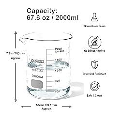 JOLABEAR 2000ml Durable Glass Beakers, 2L Laboratory Beaker with Printed Graduations, 3.3 Borosilicate, Low Form Design