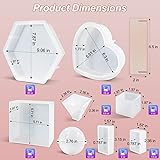 【Package Include】This resin molds set contains 3pcs large resin molds with hexagon mold, heart mold ,square resin mold with wooden support, as well as 5pcs small resin molds with sphere, cube, pyramid, rectangle shape, which can greatly meet your various creation needs.(NOTE: Resin and Flowers are not included; please refer to the video for how to preserve flowers in epoxy resin) 【Size and Resin Dosage】: Approx 60oz of epoxy resin is needed for large hexagon mold(9.06'' x 7.87'' x 1.97''); 37oz for large square mold (5.71''x 5.71''x 1.97''), 28oz for large heart mold (6.3'' x 5.51'' x 1.77'') ; 2.5 oz for pyramid mold (2.36''x2.36''x2.36''), 4oz for cube mold (1.97''x1.97''x1.97''), 5.5oz for sphere mold(2.76''x2.76''x2.76''), 2oz for rectangle mold(3.15''x1.57''x0.787''), 1.5oz for smaller rectangle mold (2.36''x1.57''x0.787''). 【Glossy & Sturdy Silicone Molds】: Our silicone resin molds are made of durable silicone material, compatible with casting resin, epoxy resin, but not for coating resin. With glossy interiors that ensure the finished product is mirror-like surface, no polishing is needed. 【DIY Floral Keepsakes】: Preserving flowers in resin is an artful way to create a one-of-a-kind keepsake as well as to design a custom piece of functional home decoration. With LET'S RESIN deep epoxy resin molds, you can preserve many special occasion flowers into resin that can be beautifully remembered and cherished including wedding flowers bouquet, Valentine's Day flowers, graduation flowers, funeral flowers. 【Use Tips】1). Pouring resin in layers or use deep pour resin is highly recommended while using deep silicone molds. 2) Add soapy water between the cured resin and the silicone, squish it around in the mold to help release your item without damaging the silicone molds. 3) It’s highly recommended to avoid using a torch/heater directly onto the resin molds as it will eventually damage the resin molds.