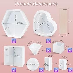 - Package Include: 1 x large hexagon resin mold; 1 x large square resin mold; 1 x large heart resin mold; 1 x pyramid mold; 1 x cube mold; 1 x sphere mold; 1 x rectangle mold; 1 x smaller rectangle mold;