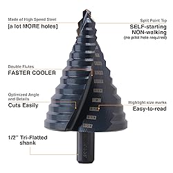 - 4241 HSS 1/4" - 2-3/8" Large Step Drill bits, Doubles Flutes Large Step Bits for Hole Drilling in Iron, Copper, Aluminum, Wood, Plastic…