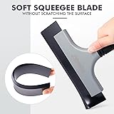 8 inch Squeegee Blades: It is the perfect size for cleaning windows, car windshields, shower doors, glass doors and bathroom mirrors. Double Edge Soft Blades: The blade is firm but soft and will not cause damage to surfaces such as tile, glass. It glides smoothly and does not leave a streak. Double edge blade will use last a long time and easy to replace. Easy to Grip: The squeegee part is made of a durable rubber and the handle fits nicely in your hand. Its compact size and ergonomic non-slip design makes it easy to handle. Effective to Clean Car Windows: The rubber squeegee is great for removing water off a car windshield. It is also good for removing ice when the windshield has a light thin layer of ice. All-Purpose Household Squeegee: The squeegee does a good job at removing the water left on surfaces after a shower. You can use to push out water bubbles when applying film to windows.