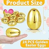 TURNMEON 24 Pack Golden Easter Eggs Empty, 2.36" Shiny Metallic Plastic Easter Eggs Fillable Surprise Gold Eggs for Easter Egg Hunt Fillling Candy Treats Toys Basket Stuffers Classroom Prize Supplies