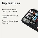Amazon Basics Portable Travel Sewing Kit for Adults, Includes Threads, Needles, Scissors, Buttons, Thimbles, Measuring Tape, Threader, Seam Ripper and Safety Pins, Black