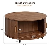 ONBRILL Round Coffee Table with Storage, 31.5" Modern Coffee Table with 360° Curved Sliding Door, Fluted Wood Accent Coffee Table with Adjustable Footpads, Round Center Table for Living Room, Walnut