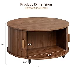 Elegant Mid-Century Modern Coffee Table: The coffee table sliding door occupies 3/4 of the entire table and measures 31.5" W and 15.7" H. Coffee table sliding door can not only be pushed open to both sides but also rotated 360°, bringing more convenience to your use Spacious Storage Space: ONBRILL round coffee table has a large storage space inside, where you can put books and toys, and the hidden space on the side can also be used to store magazines and game consoles Versatile Coffee Table: ONBRILL center table can be used as a coffee table in the living room to place food and fruits on or placed in front of a French window to enjoy afternoon tea; it can also serve as a storage cabinet in the bedroom, suitable for various scenarios Smart and Sturdy Design: To keep the coffee table top steady and stop it from shaking, iron pipes are added to the top plate. And the 4 supporting legs are added with an adjustable design, suitable for a variety of families Easy to Assemble: The round coffee table is easy to install, saving a lot of steps. And each package of components comes with clear and simple instructions and all the materials needed, ensuring that you can assemble it within 45 minutes Color Variation Note: Due to varying lighting conditions, there may be color differences between the actual product and the photo