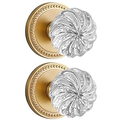 SORWDUERM 2 Pack Crystal Door Knobs Gold Door Knob Dummy Door Knobs Brushed Gold Glass Interior Satin Brass Dummy Handle Single Sided Decorative