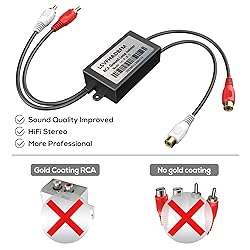 Gold Coating RCA Noise Filter Hum Eliminator Ground Loop Noise Isolator Feedback Loop Isolator for Stereo Home Theater Car Audio Player Eliminate Hum from Car Audio Systems/Home Stereos