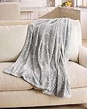 Tommy Bahama - Throw Blanket, Super Soft Bedding with Solid Sherpa Reverse for Bed or Couch, Oeko-Tex Certified (Leafy Teddy Grey, 50 x 70)