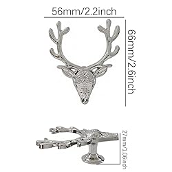 - Deer Cabinet Knobs Pulls 4PCS, Kitchen Furniture Hardware Decorative Knobs Handle for cabinets, bookcases, wine cooler doors, closets, cupboards This cute animal deer head styled cabinet knobs are sure to add a charming and personalized touch to your home décor.Our uniquely funky drawer pulls are beautifully designed and realistically styled to perfectly complement any kitchen cabinet, furniture door, cupboard, desk drawer, closet drawer, shelf and rack. Funky style, European style, American style, punk style, mechanical style, industrial style, full of creative design pulls, will give your furniture a new look. It is also an ideal gift for your family and friends.- Material: zinc alloy metal animal handle, integral molding, smooth edges without burrs, good hand feel, sturdy structure.- Size: length*width*height 66mm * 56mm * 27mm/ 2.6 * 2.2 * 1.06 inches.- The color is gold/silver.- Package includes 4 deer knobs and some screws. Tips1. This product is measured manually, the size may have a small error of 1-5mm, please understand.2. The product color may be slightly different from the computer picture.