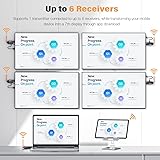 【Multi-Display Casting】 WELUSOPU wireless HDMI transmitter and receiver allow you to mirror audio and video wirelessly from your source device to multiple displays, supporting up to 6 receivers simultaneously. Perfect for home theaters, conference rooms, classrooms, bars, restaurants, or any setup requiring multi-display functionality. 【Long Range and Low-Latency Transmission】Enjoy screen casting with a stable signal range of up to 165FT (50 meters) in open spaces. Advanced 5.8G/2.4G dual-band, auto frequency hopping, and 60Hz support, this wireless HDMI transmitter and receiver ensures almost no latency, interference-free connection, even in challenging WiFi environments. 【Stunning Video and Audio Quality】 Supports 4K input and 1080p HD output for crystal-clear visuals. Combined with stereo sound, this HDMI wireless transmitter delivers an immersive audio-visual experience, whether you're watching movies, gaming, learning, business meetings, family gatherings, camping, or giving a presentation. 【Support for Multiple Receivers】Cast content to up to 6 receivers simultaneously with virtually no latency, ensuring smooth screen mirroring across multiple displays. With the upgraded chips, this wireless HDMI extender resolves overheating issues, allowing you to enjoy continuous use for an entire day without signal drops. 【Easily Share Content】 WELUSOPU wireless HDMI kit is a simple plug-and-play design. No Bluetooth, WiFi, or apps needed—just connect and wireless screen sharing. It not only saves you time but also keeps your office or living space clean and organized, free from messy cables or complicated configurations. 【Smartphones & Tablets As A Display】 Using our app and the wireless HDMI transmitter, you can mirror content to 6 touch-screen devices (iOS & Android). Enjoy videos and audio from your HDMI output device on smartphones or tablets. Perfect for on-the-go monitoring, stay connected to your screen's information from any place. Note: Supports mirroring only; does not offer reverse operations. 【Broad Compatibility 】Compatible with a wide range of HDMI-enabled devices, including laptops, PCs, MacBooks, DSLR cameras, camcorders, set-top boxes, soundbar, karaoke, TVs, projectors, monitors, and more. At WELUSOPU, we stand by our commitment to quality, reliability, and your satisfaction.