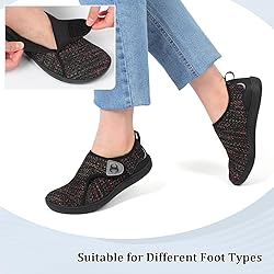 〓 Comfy wide width Shoes: Upgraded wide toe design keeps your toes in their natural shape without being squeezed. This design helps to alleviate common foot problems like bunion, swollen feet, corns, and calluses, promoting healthier feet over time 〓 Adjustable Diabetic Shoes: The adjustable straps design makes sure the shoes are tailored to your foot shape. They can meet the needs of different foot types and are ideal for patients with diabetes, bunions, neuropathy, arthritis, edema, plantar fasciitis etc 〓 Lightweight Barefoot shoes: Stretchy upper with three-dimensional Knitting gives maximum comfort and reduces sweating and odors. Put on these lightweight women shoes for instant relief and enjoy your leisure time 〓 Zero Drop Walking Shoes: Thanks to one-piece molding process, the rubber sole with non-slip treads provides excellent grip, making them safe to wear on various surface. The zero-drop non-elevated sole delivers increased stability and good ground feedback. You’ll engage your feet more and strengthen the muscles fibers that get neglected 〓 Nice Choice for You: These women minimalist shoes are perfect for indoor and outdoor activities, such as walking, gym workout, cross training, aerobic exercise, lifting, squats, jogging, yoga, cycling, travelling, shopping, driving, camping, dancing, etc