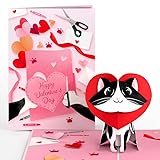 - "The front of the card features a delightful crafting scene with scattered hearts, envelopes, scissors, and a ribbon, hinting at a lovingly handmade surprise. A large pink card with a stitched heart design and the words “Happy Valentine’s Day” sits at the center, surrounded by paw prints and vibrant crafting supplies, adding a whimsical and creative flair. Upon opening, a 3D pop-up of an adorable black-and-white cat comes to life, playfully peeking through a bright red heart-shaped cutout. With big sparkling eyes and a sweet, smiling face, this lovable kitty is sure to melt hearts. The background continues the crafting theme with scattered hearts, paw prints, envelopes, and playful Valentine’s details in shades of pink and red, creating a joyful and vibrant scene. Whether you're looking for romantic gifts for her, anniversary gifts for boyfriend, or unique gifts for women, this card makes an unforgettable impression. Ideal as gifts for wife, wedding anniversary gifts for wife, or even anniversary gifts for husband, this card expresses your heartfelt sentiments with elegance. Great for occasions like Valentine's Day, wedding anniversaries, or as wedding anniversary gifts for couple. A thoughtful love card for your best friend or a meaningful gift for mom that captures your affection. Show your partner they’re appreciated with this I love you card, perfect as a husband valentine card, wife birthday card, or valentine card for him. The laser-cut design is hand-assembled from only the finest, highest-quality craft paper. Tucked-away note cards underneath the display let you add your personal message, and the fun pop-up design is sure to surprise and delight. It also comes with a matching envelope and protective sleeve to keep the card in pristine condition, ensuring it arrives ready to impress. Our Valentine's Day cards make an amazing decoration that your loved ones will enjoy displaying."