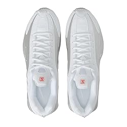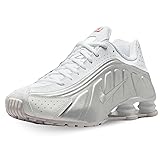 - Men's Nike sneakers in white and 'Metallic Silver', crafted with synthetic and textile materials, offer a standard fit and low top design. Key features include Nike's shox flexible columns in the heel, laser perforations, and a durable rubber outsole for performance.