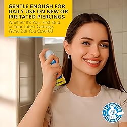 Effortless Piercing Care in Two Simple Ingredients: This piercing aftercare spray contains only USP grade water and sodium chloride —a transparent, sterile saline solution for piercings that takes the guesswork out of your care routine. The fine mist spray delivers targeted application without cotton swabs, simplifying your daily piercing cleaner routine so you can maintain your piercings with confidence and save time every day One Solution for Your Entire Piercing Collection: Whether you're rocking a fresh helix or maintaining your favorite nose ring, this versatile ear piercing cleaner works for all piercing types including nose, belly button, nipple, tragus, conch, daith, and labret piercings. Eliminate the need to buy separate products for different piercings and simplify your routine with one trusted saline spray for piercings. Gentle Fine Mist for Comfortable Application: The soft pump action delivers a controlled, even saline piercing spray that covers your piercing site without harsh streams or uncomfortable pressure. This gentle piercing solution provides precise coverage exactly where you need it, making your twice-daily aftercare routine a pleasant, soothing experience that fits seamlessly into your busy lifestyle. Sterile from First Spray to Last: Manufactured in a GMP compliant facility, this piercing aftercare maintains consistent sterility throughout the entire 4.0 oz bottle. Every application delivers the same reliable, clean piercing cleaning solution you trust, giving you confidence in your care routine from the moment you open it until the very last spray. Trusted by the Piercing Community for Over 20 Years: Since 2003, Dr. Piercing Aftercare has served piercing enthusiasts with purpose built solutions designed from real community feedback. This nose piercing cleaner and ear piercing solution reflects decades of experience creating products that work for active lifestyles, helping you show off your piercings with confidence while maintaining simple, effective piercing care.