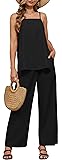 RUBZOOF Two Piece Sets for Women Summer Lounge Sets 2025 Beach Jumpsuit Cami Top Wide Leg Pant Set Vacation Outfits (Black,M)