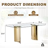 ModaWhly 63“ Modern Dining Table, Elegant Tempered Glass Kitchen Table with Gold Stainless Steel Base, Rectangular Glass Dinner Table for Home Office, Living Room Furniture, Easy Assembly