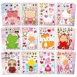 Aowplc 48 Sheets Valentine’s Stickers - 12 Cute Make-A-Face Designs - Valentine’s Day Gifts for Kids, Classroom Crafts & Party Supplies