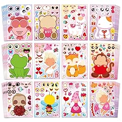Fun Valentine’s Stickers: This set includes 48 sheets of Valentine’s Day stickers, with 12 unique and cute make-a-face designs (4 sheets of each design). Perfect for creating fun and personalized stickers for kids. Encourages Creativity & Crafting: Let kids unleash their creativity by mixing and matching various eyes, mouths, and accessories to create their own unique Valentine’s Day characters. Ideal for crafting fun and imaginative Valentine’s Day activities. Perfect for Classroom Crafts: These Valentine’s stickers make a great classroom activity, allowing kids to engage in arts and crafts while celebrating the holiday. Excellent for building teamwork and artistic skills during Valentine’s Day parties or lessons. Ideal Valentine’s Day Gifts for Kids: A fantastic option for Valentine’s Day party favors, gifts, or goodie bag stuffers. These make thoughtful, fun, and interactive gifts that kids will love receiving. Versatile & Easy to Use: The stickers are easy to peel and stick, making them perfect for kids of all ages. They can be used for decorating cards, creating party favors, or adding a personal touch to Valentine’s Day gifts and crafts.