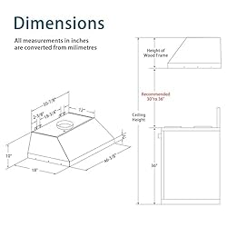 4-Speed Adjustable Fan: This built-in vent range hood has 4 fan speeds controlled by an electronic push-button panel with a maximum speed of 1240 can effectively and easily remove a lot of smoke and cooking odors from the kitchen air, significantly improving air quality. Adjustable Lighting: Our fan comes with four 3W lights, you can choose to turn on, dim and turn off according to the weather or when the light is dim. To avoid too bright or too dim light to bring you eye discomfort when you are cooking. Removable Baffle Filter: We use hight-quality tainless steel filter plate, in the design also added handle, so you can easily remove it. Stable and durable, for your excellent cooking escort. Product Size: The size of our hood is 46-3/8 in x 18 in x 10 in.Duct: 8" round. Please measure the space you need to leave, to make sure that our hood can fit your kitchen perfectly, it will be our great honor. Fingerprint-Resistant Range Hoods: this 48-inch range hood is made of 304 high-quality stainless steel, corrosion-resistant and easy to clean (if individual stains are more stubborn, you can remove them by using rubbing alcohol)