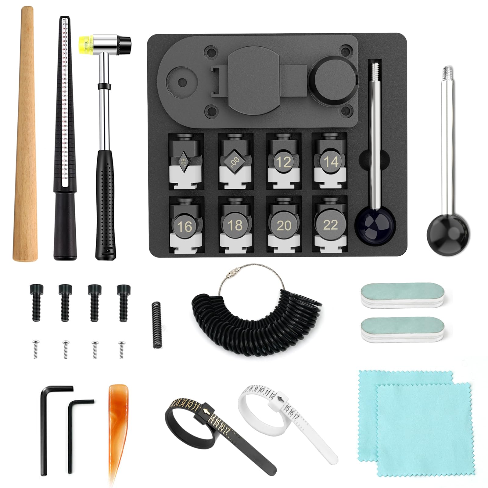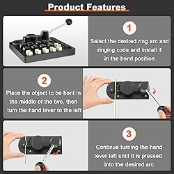 Ring Bender Tool Set: This package not only includes the ring bending tool. Our ring making kit includes 6 nylon dies, 6 iron dies and important tools such as a ring measuring tool, polishing cloths, hammer Precision Crafting: Crafted with precision, the ring bender tools provide accurate sizing and shaping for your jewelry projects. A must-have for jewelry stores, our ring bender can shape various rings efficiently Heavy Duty And Multifunctional:This durable kit is ideal for home crafting, jewelry stores, DIY projects, and repairs, jewelry making ring bender novices and hobbyists, this comprehensive set offers the perfect blend of quality and functionality Designed For Soft Metals: Please use materials no thicker than 3mm to achieve optimal results. Its specialized design ensures you get the best results every time, whether you're crafting rings, earrings, or other metal components Extensive Accessories: The ring maker provides nylon dies that allow you to perform bends without damaging delicate materials, with a multi size design that adjusts the bending angle and shape to meet the design needs of different rings