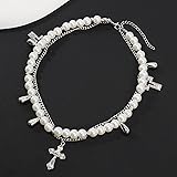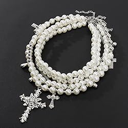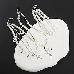 ♥ High-quality Material: This set necklace is made of high quality faux pearl (glass) and alloy. Not easy to fade. Easy To Put On And Take Off And Safe Enough For Your Sensitive Skin. 💃 Style: The chunky stacked pearl necklace can be split into three necklaces to wear or wear together. The cross is large, detailed, and ornate. perfect accessories for different costumes and for the festive spirit of to make the party more exciting and fun.Elevate your outfit with the timeless elegance of this statement piece, perfect for both casual and formal occasions. 🔔 The necklace measures: necklace length 12.6"+2.75", 14.4"+2.75", 15.5"+2.75". Our pearl choker necklace is designed with an adjustable chain, allowing you to find the perfect fit for your neckline. 🎁 Perfect Gift: Sweet gifts for yourself, mom, daughter, sister, wife, girlfriend,friend,families on birthday,Christmas,anniversary, as a gift to express your love for them. 📧 If you have any question or need, please do not hesitate to contact us for a solution, we will do our best to solve for you within 24 hour.