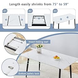 - 59"-75" Extendable Dining Table Set for 6 dining room table set for 6 white dining table set for 6 faux marble dining table set for 6