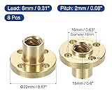 uxcell 8 Pcs Tr8x8 Lead Screw Brass Nut, Trapezoidal Nut Linear Screw Acme Thread Screw Replacing Brass Nut (2mm Pitch, 4 Start, 8mm Lead) for 3D Printer Accessories