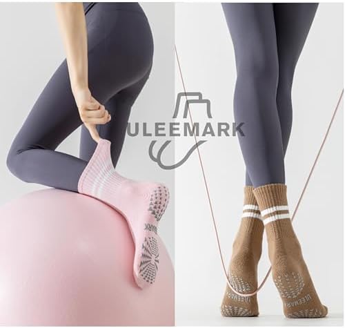 ULEEMARK Womens Pilates Non slip Yoga Socks Dance Gym Exercise Ankle Socks