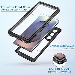 IP68 Certified Waterproof : Perfect waterproof case compatible with Samsung Galaxy S25 Ultra 5G (6.9 inch), extreme safe even after 1000 times test of using underwater 6.6ft for 1 hour. Design for Samsung S25 Ultra, perfectly adapted to cell phone functions. Not for Galaxy S25 / S25+ Plus. Fit Like a Gloves : Compatible with magsafe and wireless charging support, N52 magnet ensuring compatibility with all magnetic accessories. Supports S Pen and Fingerprint Unlock (Please paste the fingerprints pad in the fingerprint reader position then perform fingerprint recognition again). Full Body Protection : Waterproof, Shockproof, Dustproof, Camera Protection, full sealed design exceeds military standard to adapt any outdoor activities; Built-in HD plastic screen protector prevents scratches, damage and dirt, also won't affect the touch sensitivity or clarity; Compact and Lightweight : TPU material with hard plastic frame, makes your phone lightweight and tough; Slim body (17.76 *8.79 *1.3 cm) doesn't add much to the size of your S25 Ultra; With a phone strap for convenient carrying. Clear back cover will show off the beauty of your Galaxy S25 Ultra. Easy Installation : Two covers (front/back) snap on design makes it fast and easy to install or take off in seconds, suitable for daily use; One Year Warranty!