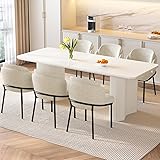 - 79" Rectangular Dining Table with 6 Chairs, Modern White Kitchen Dinner Table with Chairs Set for Living Room, Dining Room & Kitchen