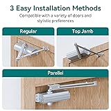 - POWAWINI Automatic Door Closer, Adjustable Self Closing, Backcheck Function, ADA Compliant, UL 3 Hour Fire Rated, Grade 1 Heavy Duty, 2 Million Cycles, Residential & Commercial Use, Silver Aluminum