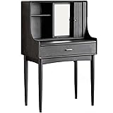 HHHJQFAAT Black Vanity Desk, Makeup Vanity Set with Open Storage Shelves, HD Mercury Mirror, Push-Pull Design Dressing Table Writing Desk (Without Stool)